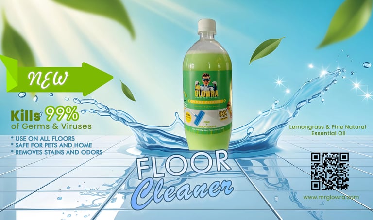 Mr Glowra Floor Cleaner is more than just a cleaning product. It’s a complete solution for modern homes – combining powerful cleaning, long-lasting fragrance, natural insect protection, and family-safe ingredients. Perfect for homes that demand hygiene, freshness, and peace of mind, it ensures your floors look, feel, and smell amazing every day.